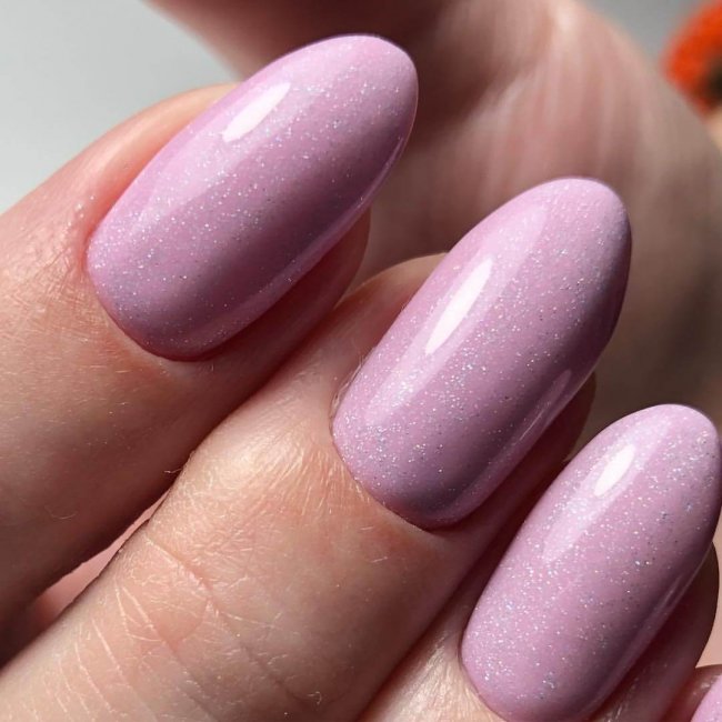 Гель-лак лиловый, с блестками голографик, плотный.