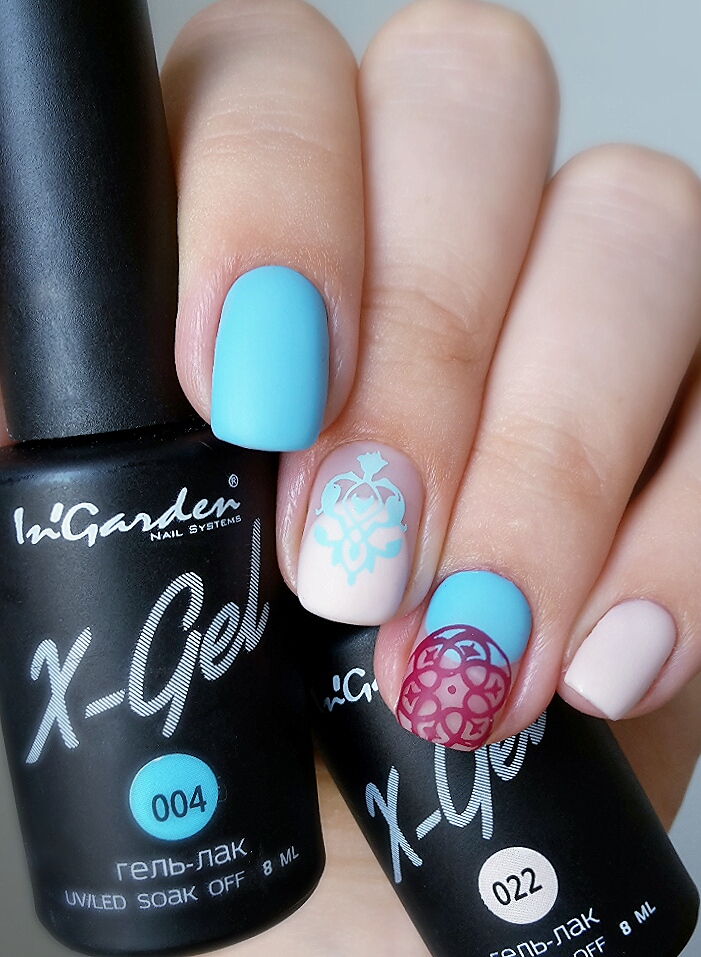 4. На заполимеризованный слой базового покрытия наносим гель-лак In'Garden X-gel. Гель-лак хорошо ложится в 1 слой.